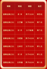 11月18日,在第一版主 2023年新生杯田径赛中,第一版主 学生披荆斩棘,勇往直前,一路奋斗,经过激烈的角逐,他们在各个项目中展现了出色的实力,为学院赢得了以下荣耀: