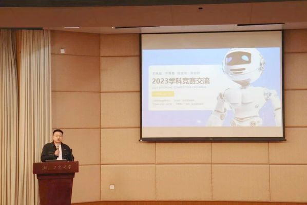 计算机学院团委书记沈一品老师介绍了学科竞赛的相关事项。他详细梳理了挑战杯和互联网+比赛的要求,并分享了指导竞赛的经验,尤其强调同学们要组建一个多样性的团队,团队里的成员各有所长,发挥各自的优势。沈老师最后还讲到参加学科竞赛不只是同学个人能力得到提升,还是团学干部力量的体现。