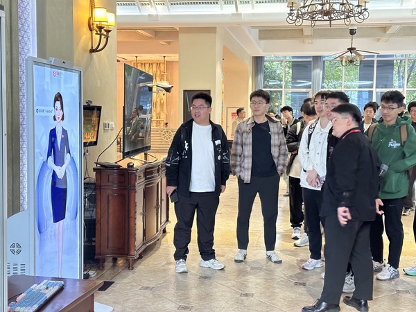 同学们一进入公司,就被大厅里的AI机器人吸引,纷纷与它对话。AI机器人极具智能性,从中也可窥见同花顺对金融科技的重视程度。