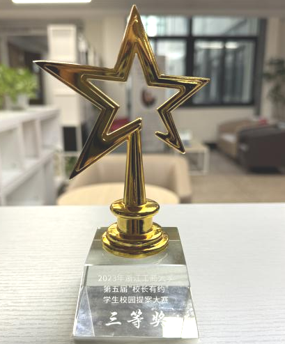 普惠金融2301班王梓欣、倪佳怡、钱绯宇三位同学提交的《关于校园电动车充电桩规范治理的提案》获评十佳提案并获得三等奖。