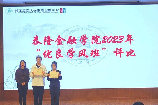 最后,综合初评和现场展示成绩,普惠金融2103班和普惠金融2201班荣获“优良学风班”的荣誉称号,鲍碧丽老师为获奖班级颁奖。