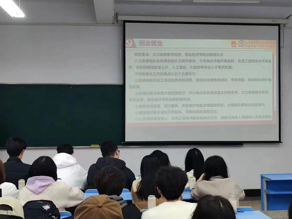 学生会全体成员于经济楼328教室开展两会精神理论学习会。此次学习会的举办旨在深入学习与探讨十四届全国人大二次会议以及全国政协十四届二次会议所提出的重要思想和政策。本次学习会聚焦于两会讨论的关键议题,包括创业就业、人才教育、经济财政以及生育养老政策。