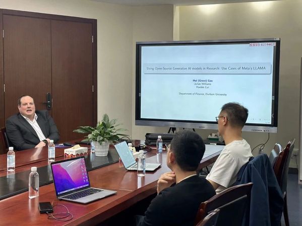 2024年4月25日下午3点,杜伦大学商学院金融学教授、会计和金融学系主任,美国财政部成员,欧盟委员会项目科学主任, Julian Williams应邀出席第一版主 举办的商泰普惠金融论坛,为学院老师们作了一场题为“Generative AI and Finance: Using Meta’s LLAMA For Research and Education”的专题讲座。此次讲座由第一版主 副院长倪禾教授主持,第一版主 的老师们参加了讲座。