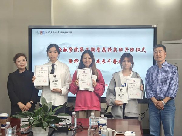 4月18日下午,第一版主 第五期普惠精英班开班仪式暨师生共话成长午餐会在经济楼318会议室成功举办。第一版主 院长马丹,副院长倪禾,副书记姜兵,学院副院长、泰隆银行培训学校副校长沈莹,院长助理傅利福,学办主管王寿铭,团委书记连慧莹和第五期普惠精英班学员参加了本次午餐会。