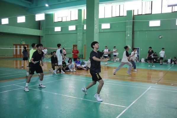 众所周知,羽毛球场上的对决,是一场力与智的较量。比赛一开始,双方便渐渐地进入状态:你攻我守,你扣我挑。赛场上,他们用球拍书写着青春的篇章,用汗水浇灌着胜利的花朵。每一次扣杀,都如同利剑出鞘,凌厉而致命;每一次救球,都如同舞者轻盈,敏捷而优雅。汗水滴落,是他们努力的见证;眼神坚定,是他们决心的体现。在激烈地对拼下,双方你来我往、不可开交,赢得了在场观众们的阵阵喝彩声。