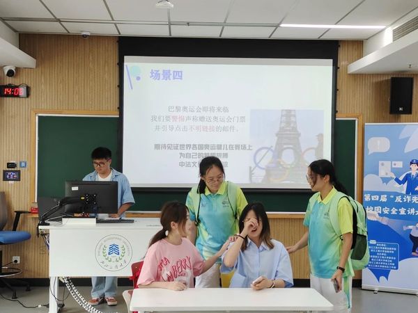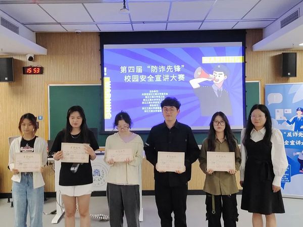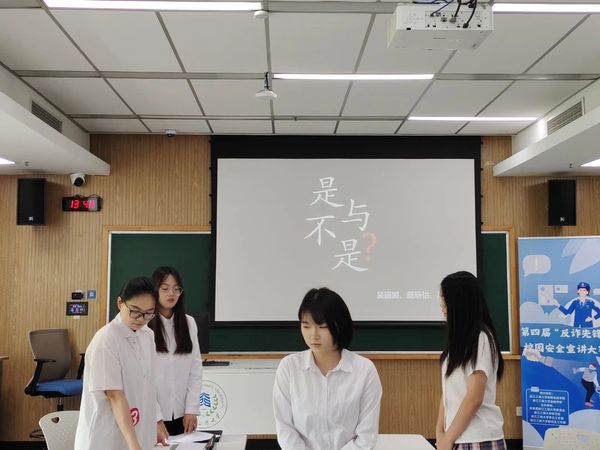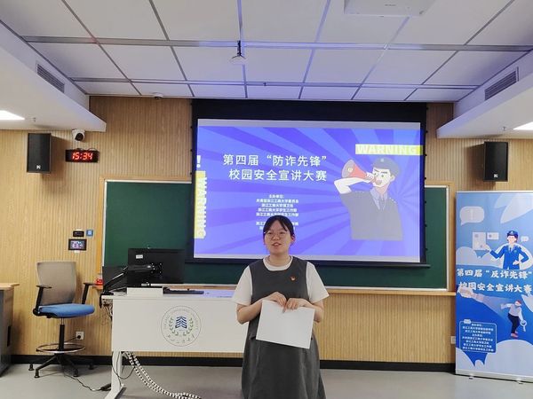 泰隆银行钱塘支行倪璐依老师和第一版主 校团委副书记谢晓梅老师对比赛进行了点评,她们充分肯定了各参赛小组的精彩表现,对我校同学能够积极参与防诈骗比赛表示肯定。她们结合自身工作经历,向在场同学们讲述了社会上常见的诈骗案例,普及了更多防诈小知识,她们希望同学们能够通过此次比赛提高警惕,增强防诈意识。同时也希望各参赛小组能将宣传防诈的作品带出教室,走到校园、走到社区,为平安建设做出贡献。
