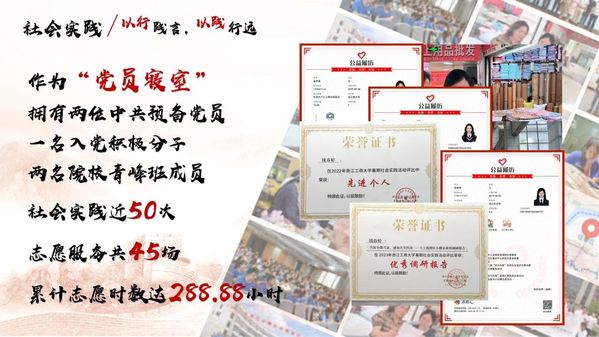 行而不辍,未来可期,在学生工作方面,寝室4位同学共计有14段学生工作经历,参与和组织40余场院校级活动策划,累计服务师生4000余人。