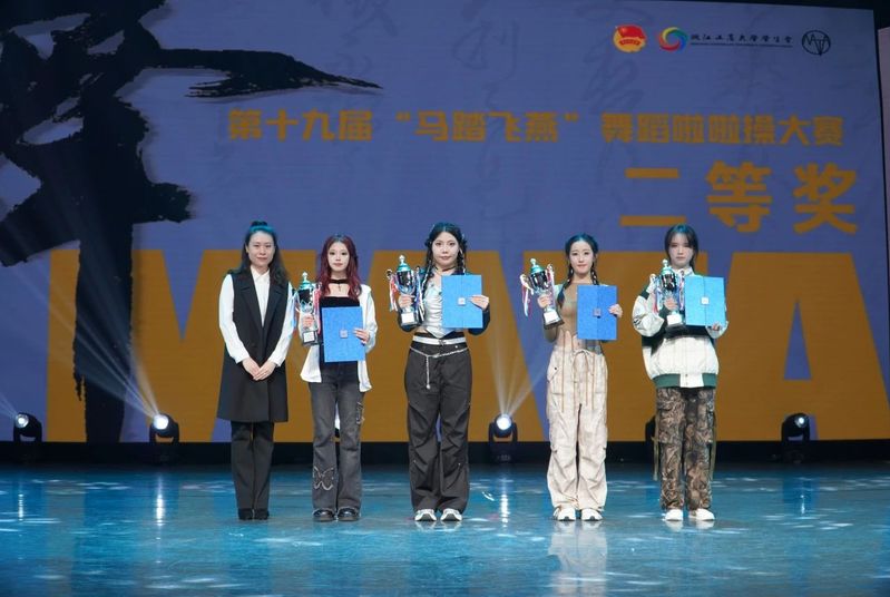 (左二为学院舞队代表胡冰同学领奖)