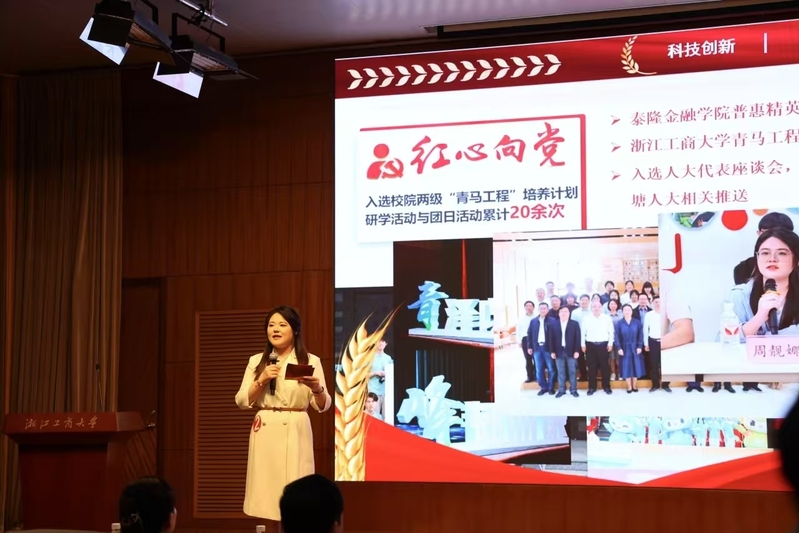 竞选科创之星的周靓娜,她以“数理为基,践行笃志”为人生信条,用实际行动诠释新时代青年的担当,在科技创新、团学工作、红心向党等多领域取得优异成绩。