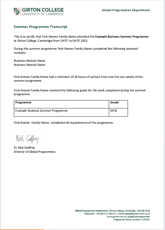 2)剑桥大学主办学院成绩单