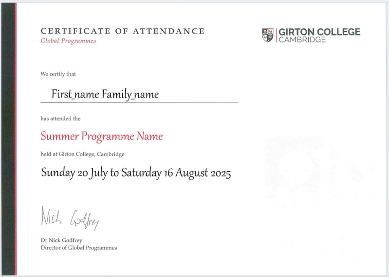 1)剑桥大学主办学院结业证书