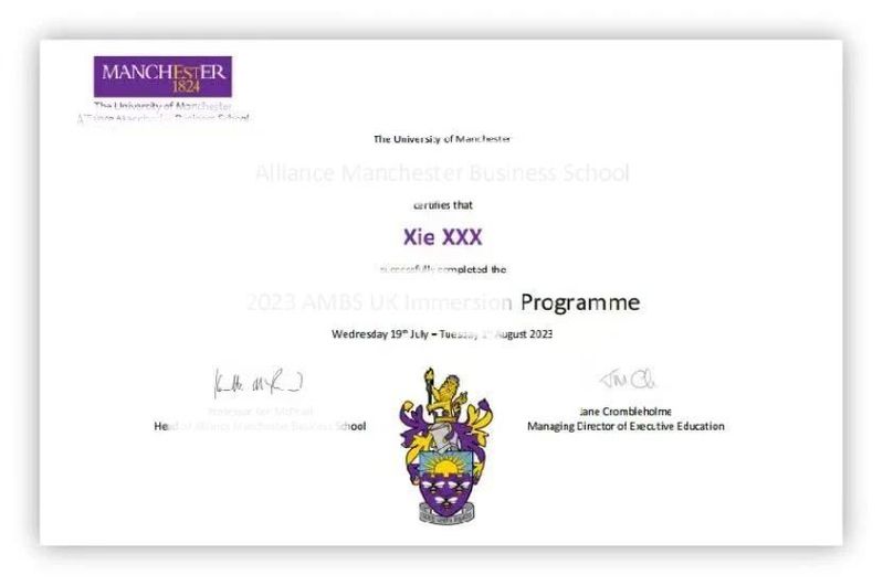3)曼彻斯特大学主办学院结业证书