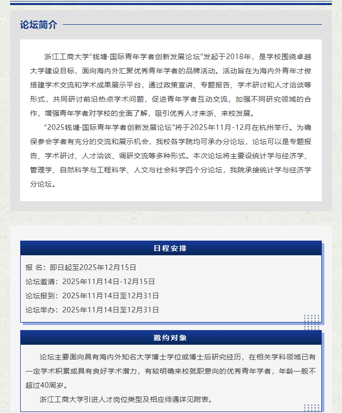 活动资讯 | 第一版主 “2025钱塘•国际青年学者创新发展论坛”暨海外引才交流月活动启动公告