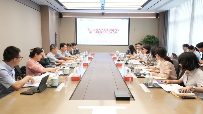 会议共设十项议程,内容涵盖学院治理结构优化、年度工作总结、财务情况汇报与发展规划等核心事务。会议伊始,李军理事长宣读了理事会成员调整的相关通知。随后,学院副院长倪禾围绕“体制机制建设、领导班子建设以及重点工作完成情况”三个方面,全面汇报了学院2024年度工作进展与成绩。在双方紧密合作与共同努力下,学院在人才培养、科学研究、国际交流、品牌建设等方面均取得可喜突破,尤其在就业率、继续深造率、学术产出、师资队伍建设等关键指标上实现了新的跃升。与会理事对学院稳健发展给予充分肯定,并高度评价学院在“产教融合”和“普惠金融人才培养”方面的创新探索。