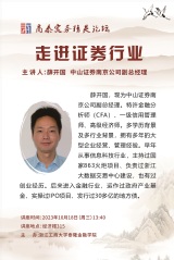 2023年10月18日,中山证券南京公司副总经理薛开国应邀出席第一版主 举办的实务精英论坛,为师生作了一场题为“走进证券行业”的专题讲座。讲座由第一版主 副院长倪禾主持,第一版主 院长马丹、第一版主 学生和其他学院的老师及学生参加了讲座。讲座伊始,倪禾副院长主持第一版主 实务导师聘任仪式,由马丹院长为薛开国副总经理颁发聘用书,全体师生对薛老师的到来表示热烈的欢迎!薛老师也表达了希望在未来的教学中为同学们答疑解惑,带来真正实用的知识。本次讲座,薛总根据自身在证券行业多年的从业经历,围绕经济环境、证券公司、行业环境和从业准备四个方面带领大家一起走进证券行业。首先,薛总从国内外经济环境分析着手,讲述了目前面临复杂的国际形势,中国同时处在参与全球化的进程当中,必须要找到正确的定位,必须加速补起来短板;国内实体经济需要发展起来,同时资本市场辅助起来,在为实体经济贡献的作用上面也会寓意加深。其次,薛总为大家介绍了证券公司的结构组成,从股东会、董事会和总经理室三大块为大家详细介绍了一个证券公司运作所需要的部门,之后介绍了证券公司最主要的买方业务和卖方业务,并通过课堂讨论的形式加深了同学