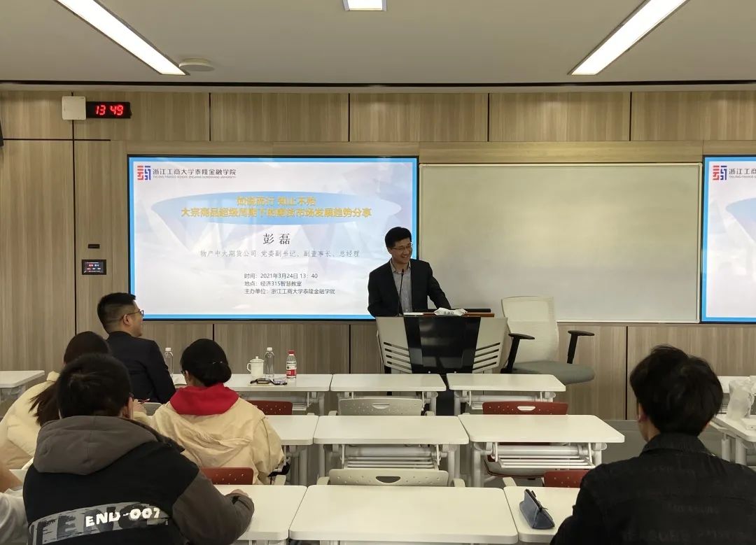 学生开展主题为“如说而行 知止不殆——大宗商品超级周期下的期货市场发展趋势分享”的专题讲座。/span>/p> 彭磊,南开大学金融工程硕士,现任物产中大期货公司党委副书记、副董事长、总经理,历任物产中大集团投资部助理、副总经理、总经理、投资决策委员会副主任,具有企业改革、并购重组、资本运作等领域丰富的实务经验。/span>/p> 期货市场的前世今生/span>/p> 讲座伊始,彭总向同学们介绍了期货市场的前世今生,并就期货行业现状、中国期货公司业务开展情况、中国期货行业未来发展趋势三个版块展开讲解。彭总指出,全球期货 市场最早起源于农产品,由农产品开始,全球衍生品市场快速发展,逐渐形成现在的规模。随着我国期货市场不断扩大,其在全球期货市场中的地位也越来越高。同时,我国的期货行业也进入转型时期,期货公司将逐步成为具有独特优势的综合金融服务商。/span>/p> 复苏和再通胀支撑商品周期/span>/span>/p> 紧接着,彭总就复苏和再通胀支撑商品周期向同学们展开讲解,并大胆预测了2021年国内外的经济发展状况。/span> 物产中大期货发展概况/span>/span>/p> /span> /span> /span> /span>随后,彭总通过“我们是谁?”、“我们做什么?”、“我们怎么做”这三个“我们”的提问,引出物产中大的战略目标是聚焦核心产业生态,深化“一体两翼”战略构想,通过数字技术赋能,打造智慧供应链,并实现产业互联网突破,最终成为具有国际竞争力的产业生态组织者。/span> /span> /span> /span> /span>彭总深入浅出的讲解令同学们受益匪浅,经过此次讲座的洗礼,同学们不仅加强了对期货行业的认知,更明确了自己未来的职业生涯规划。希望同学们能加强专业知识的学习,在未来为期货行业的发展贡献自己的一份力量!/span>/p> /p> /p>