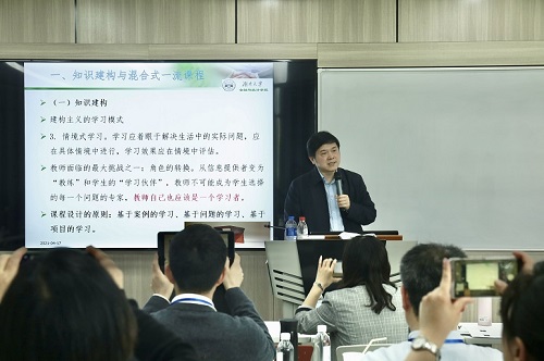 整个培训会紧紧围绕金融类专业混合式一流本科课程建设展开,中央财经大学金融学院副院长王辉教授以《金融工程概论》为例,分享了课程思政与混合式教学的建设经验,湖南大学金融与统计学院副院长吴志明教授分享了基于知识构建的《国际金融》混合式教学经验,西南财经大学金融双语教学中心主任许志教授则以《公司金融学》为例,分享了课程生态与金课建设经验。
