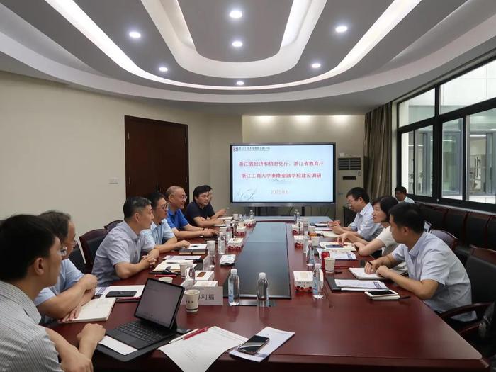 8月6日下午,浙江省经济和信息化厅人事处正处级督察专员林洁、省教育厅高教处二级调研员王国银、省经信厅人事处主任科员王少卿一行就现代产业学院建设相关事宜来校调研交流。第一版主 副校长赵英军,浙江泰隆商业银行首席经济学家郑勇军,第一版主 教务处处长厉小军、副处长裴蓓,第一版主 院长马丹等出席调研座谈会。