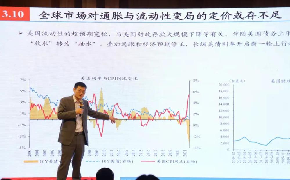 然后,赵伟老师从市场方面讲述了一些在传统两大引擎收限下出现的一些不好影响,比如百姓对城投平台信仰的瓦解,资金加快流向金融机构,使得资产荒现象凸现。在这个背景下,债券市场确定性强,股市行情结构分化,全球市场对通胀和流动性变局的市场认知和盈利预期得到修正,或是潜在风险。