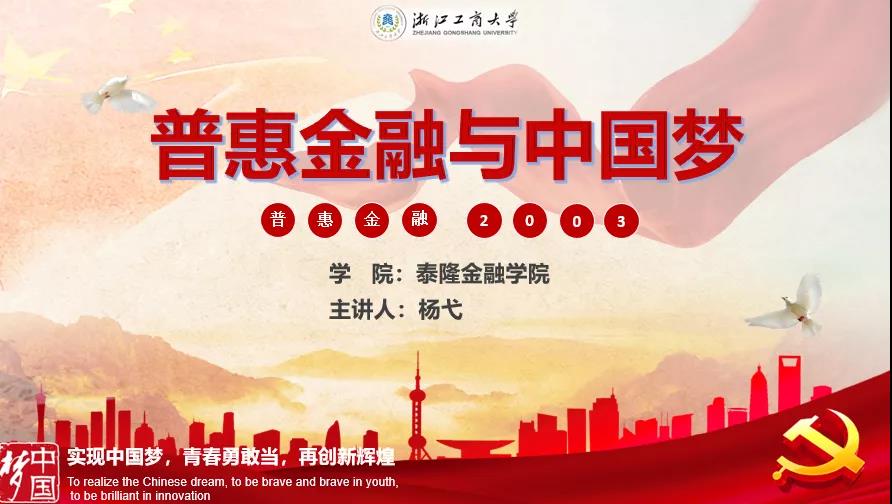 接着,杨弋老师指出,“普惠金融可能不似春雷那般振聋发聩,但一定如春雨一样润物细无声,回过头来,已是满地生机。”如今,普惠金融服务的小微经济体为中国创造了50%的税收,60%的GDP,70%的技术创新成果,以及80%的城镇劳动就业。普惠金融就是中国梦最好的展现和践行!
