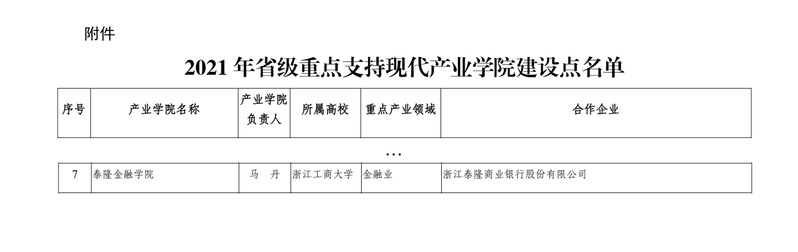 12月22日,浙江省教育厅办公室、浙江省经济和信息化厅办公室下发《浙江省教育厅办公室 浙江省经济和信息化厅办公室关于公布2021年度省级重点支持现代产业学院建设名单的通知》(浙教办高教〔2021〕70号),第一版主 成功入选首批省级重点支持现代产业学院建设点。此次共有21个产业学院入选,第一版主 作为推荐申报教育部首批现代产业学院的 8 个项目之一,直接被列入省级重点产业学院建设点。