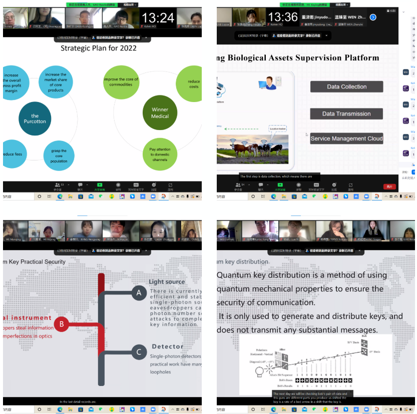 接下来的课程中,Hugh Thomas 教授以案例分析为主要形式,介绍了招商银行“一体两翼”战略以及招行自行研发的CBPBS系统。Hugh Thomas 教授还以Sensetime(商汤科技)公司和Bowtie保险为例,分析了人工智能AI的发展进程及Bowtie保险在疫情下发展线上保险平台的创新点以及目前所面临的危机。同学们还参加了助教课程并在小组讨论板块与小组成员进行项目讨论,完成quiz测验。