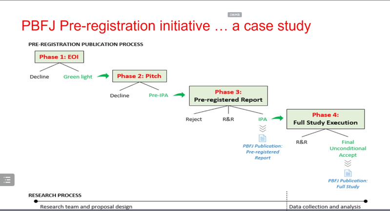 其次,Faff教授阐述了他作为the Pacific Basin Finance Journal主编如何鼓励学者通过“pre-registration”的方式投稿。pre-registration是指在数据收集和实验分析得到结果之前,将研究计划、假设、实验设计、样本规模等思路写一个研究报告并提交期刊。这样做有助于防止p-value hacking和HARKing的出现,并能提高研究结果的独立性和可靠性。此外,pre-registration还可以减少研究的浪费和避免无效的实验设计。