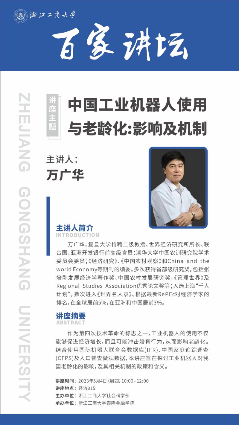 百家讲坛预告|中国工业机器人使用与老龄化:影响及机制