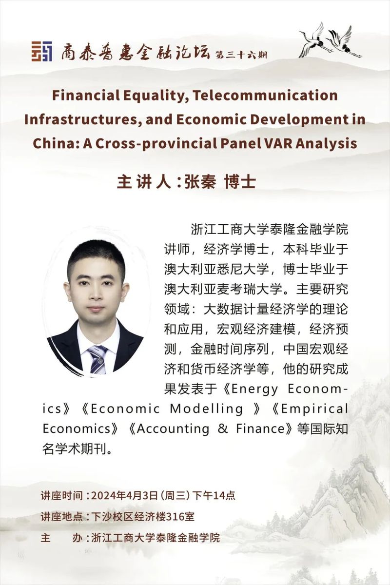 讲座预告|Financial Equality, ICT and Economic Growth In China