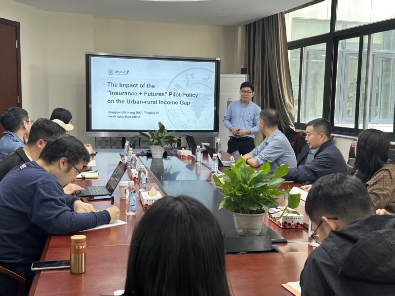 骆兴国教授首先分享了自己的一篇工作论文,文章以全国2014-2021年全国实行“保险+期货”项目的515个县为研究对象。骆教授指出,一直以来,中央一号文件对农业保险高度重视,“保险+期货”多次被提及,是当下发展普惠金融的“新型武器”,如陕西省延安市富县享有“苹果之乡”美誉,在当地政府大力支持下,联合浙商期货、郑州商品交易所、太平洋产险多家公司,通过推进“保险+期货”项目的顺利运行,推动了当地特色农业经济的发展,扩大了“延安苹果”的品牌影响力,为果农稳产增收提供了成功经验,也为当地巩固脱贫攻坚成果、推进乡村振兴工作贡献了金融力量。文章通过构建DID模型,实证结果表明推行“保险+期货”试点政策,有助于提升当地村民收入,缩小城乡收入差距,“保险+期货”这种新型金融工具,能够帮助农户降低经营风险、增加收入,破解市场价格波动导致增产不增收问题,助力当地农业企业实现保供稳价。