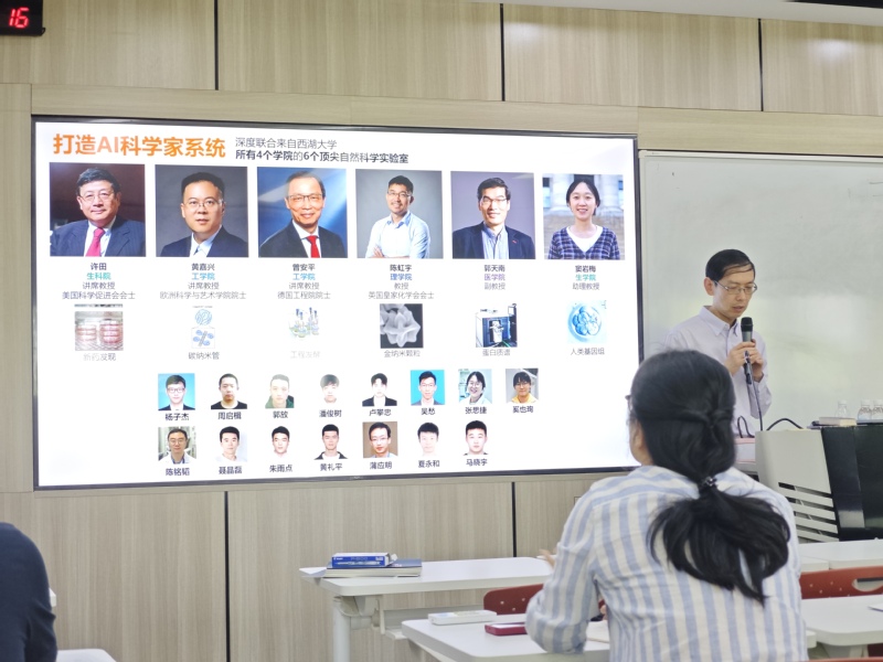 讲座伊始,张岳教授以幽默的语言分享了个人科研经历,回顾了从大模型研究转向金融领域的跨界探索,并展示了自然语言处理技术在金融舆情分析、股市预测等场景中的前沿应用。随后,他以“AI如何加速人类科研进程”为核心命题,层层递进,通过四大创新性研究工作的剖析,为听众描绘出一幅AI赋能科研的革新图景。