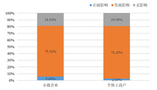 调查发现:超过七成的小微企业和个体工商户的经营活动都受到了新冠疫情的负面影响,其中住宿和餐饮业、教育以及制造业等行业受到的冲击最大。在此背景下,小微企业迫切需要政府给予资金扶持和政策保障。超过五成的小微企业和个体工商户会积极主动去了解政府最新的扶持政策,大约三成的小微企业和个体工商户最终能够享受到政策红利。税收和融资的优惠政策最受到小微企业的欢迎。政府扶持政策不仅可以为小微企业提供支持,更重要的是能够鼓舞企业的信心。超过九成的小微企业和个体工商户对已实施的政策表示满意,并对未来充满信心。1.七成小微企业受到疫情负面影响,住宿餐饮、教育与制造业受影响最大将新冠疫情的影响划分为正面影响、负面影响和无影响。调查结果表明,超过七成的小微企业和个体工商户都受到了新冠疫情的负面影响,仅有不到两成的小微企业和个体工商户没有受到影响,以及极少量的小微企业和个体工商户受到了正面影响。这表明,新冠疫情给小微企业和个体工商户带来了较大的冲击。